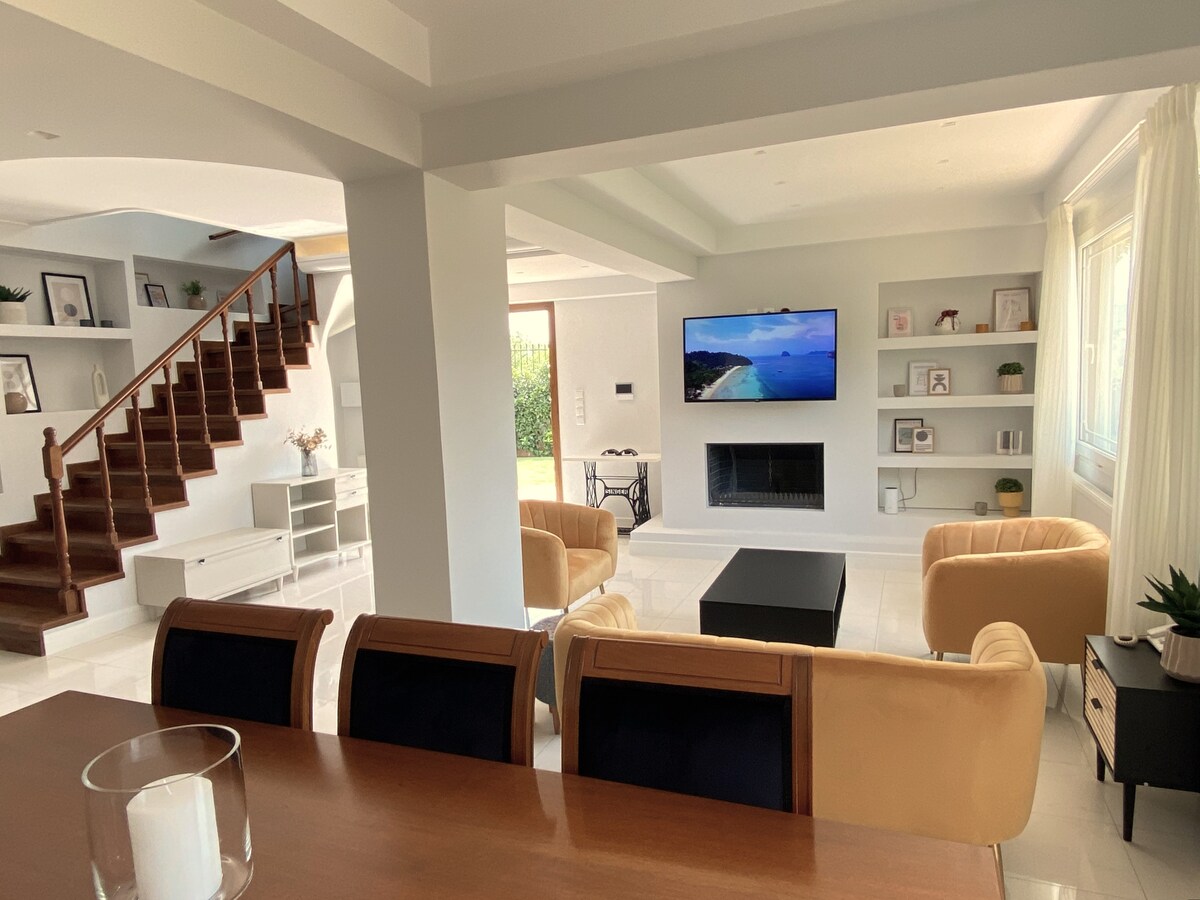 A BlueTopaz Villa egy privát luxusüdülő mindössze 4 percre Nafplio történelmi központjától. A kényelemre és stílusra tervezett szálláshelyhez saját medence, tűzrakóhelyes társalgó és csillagok alatti szabadtéri mozi tartozik. Élvezd a békés környezetet, ahonnan könnyen eljuthatsz éttermekhez, strandokhoz és kulturális programokhoz. Tökéletes pároknak, családoknak vagy kis csoportoknak, akik kifinomult és emlékezetes szálláshelyet keresnek. A szabadtéri mozi egyedi hangulatot teremt, amely tökéletes a nyugodt filmestekhez teljes magánéletben és kényelemben.