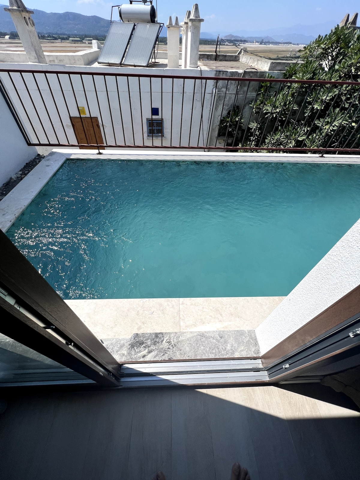 Mekanımız butik otel tarzında tasarlandı . Ailemizin her bireyinin bol emeği var . Uzun soluklu bol emekli pendemi sonunda mutlu sevinçli bir eser çıktı. Binamızda merdiven kulesinden bağımsız olarak girilen 3 odamız mevcut . Her odanın kendi banyo tuvalet ve balkonu ve 2 odanın içinde mini suite mutfağı var . Odalardan Zemin kat , 1 . Kat ve Attic 2. kat . Bir de Bodrum’da odamız var ama onu listeye yazmadık Havuzumuz ve havuz kenarında tam teşekküllü MUTFAK &yemek alanı mevcut