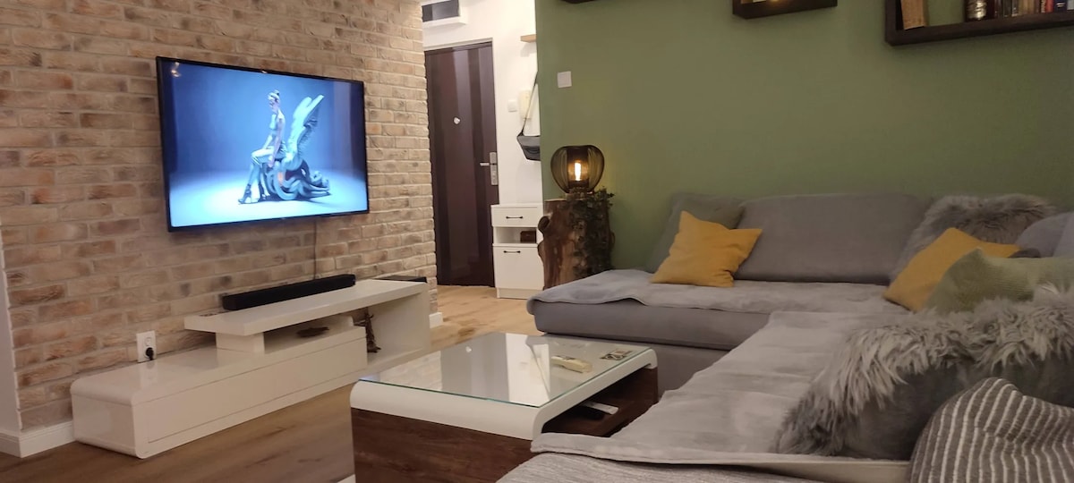 Pihenj ezen a csendes, stílusos helyen. Lakosztály Bauhouse és Boho jegyzetek lemosásával. Az apartman 2 ággyal van felszerelve, 160 cm x 200 cm. Alkalmas családok, párok, barátok, üzletemberek és utazók számára. Kényelmes lakás 4 felnőtt számára. A lakásban törölközők, evőeszközök, tányérok, ágyneműk, higiéniai termékek, mosó- és szárítógépek, valamint mosogatógépek találhatók. Vasaló és vasalódeszka. Az ingyenes parkolás nem garantált, de az épület mellett elérhető.