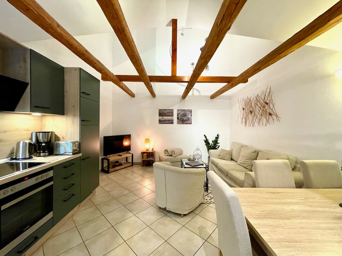 Az új és szeretettel berendezett 61 m² -es lakás a Saale-Unstrut-Triasland Természeti Park szívében üdvözöl! A természet és a mozgás szerelmesei itt lazíthatnak és pihenhetnek túrázás és kerékpározás közben. A melegebb évszakban a White Elster borvidékét élvezheted. Legyen szó egyéni kalandorokról vagy párokról (gyerekekkel vagy anélkül)- mindenkit szívesen látunk a mi "kis paradicsomunkban"! A házon belüli infraszauna a rendelkezésedre áll!