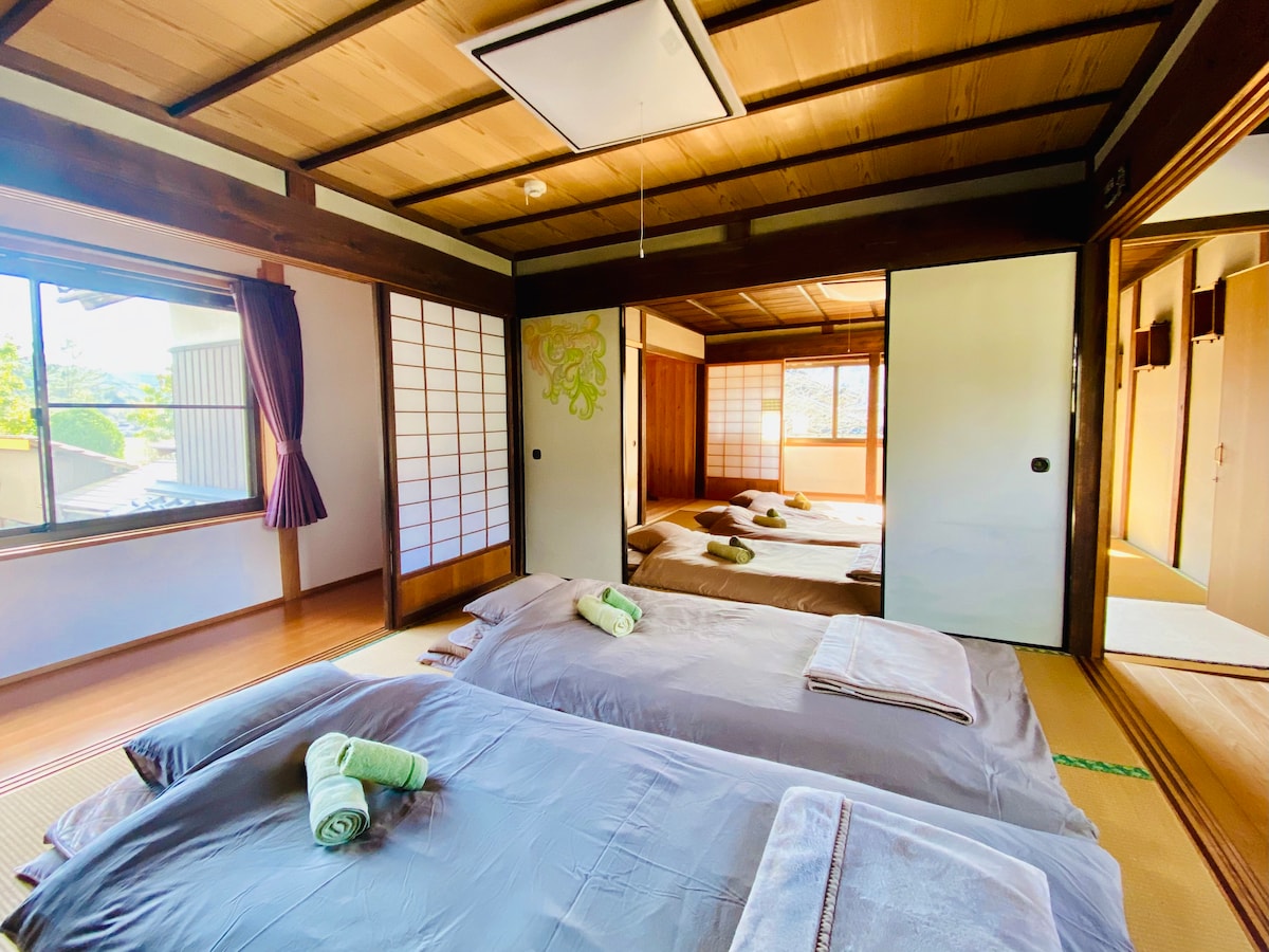 This listing is for one group of 4–7 guests. For 1–3 guests, please check our other listing. This is a private cottage separate from the main house. 1F: living room with toilet & washbasin. 2F: two Japanese-style rooms with futon and blackout curtains. Kitchen and shower are in the main house and available anytime.