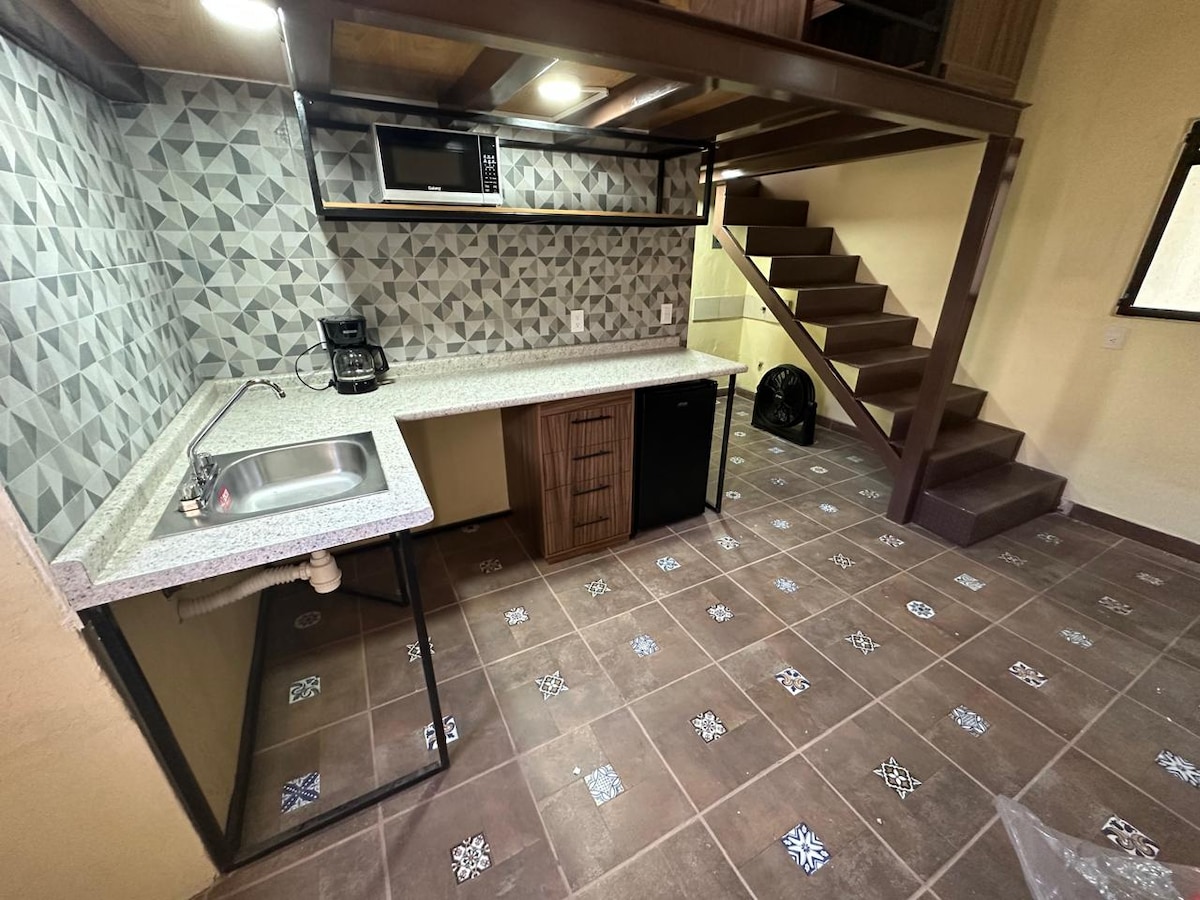 Fedezd fel a menedékedet a város szívében, a minimalista, tágas és világos loftlakásban, a Virgen de Gpe Sanctuary oldalán. Ideális 1-2 főnek, kényelmes, modern és tökéletes pihenéshez vagy munkához. Wi-Fi-vel, felszerelt konyhával (mikrohullámú sütő, kávéfőző, tűzhely, hűtőszekrény), íróasztallal, TV-vel és gardróbbal. Az épülettel szemben található gyönyörű piac helyi ételekkel, gyógyszertárakkal és üzletekkel. Élvezd az autentikus helyi élményt biztonságos és külső biztonsági kamerákkal. #Central #Kényelmes #Felejthetetlen