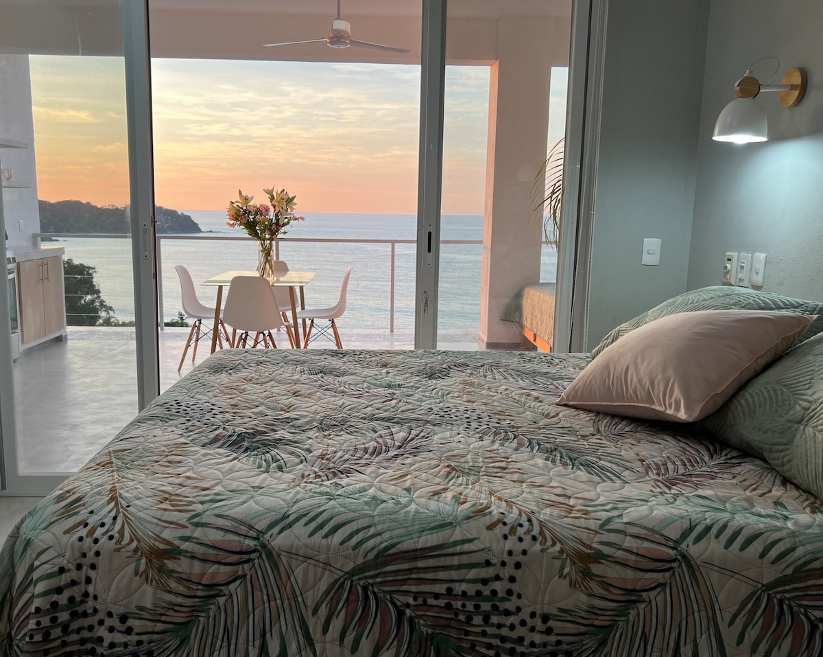 Romantic studio with panoramic ocean views in the tranquil north end of Sayulita a few blocks uphill from the beach. *Brand new, completed December 2022! *High speed wifi via Sayulitawifi *42" Smart TV *Air con, ceiling fans *Kitchen: stove, oven, microwave, blender, coffeemaker, all utensils *Breathtaking panoramic views *Queen bed, pillowtop mattress *Exterior double size sofa bed *Parking for 1 vehicle *Bathtub *Common area pool, grill *ocean view yoga studio with daily class *Gym
