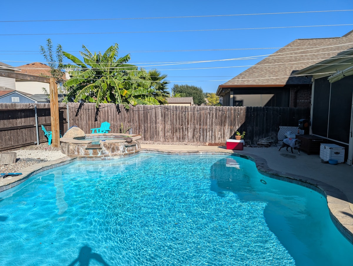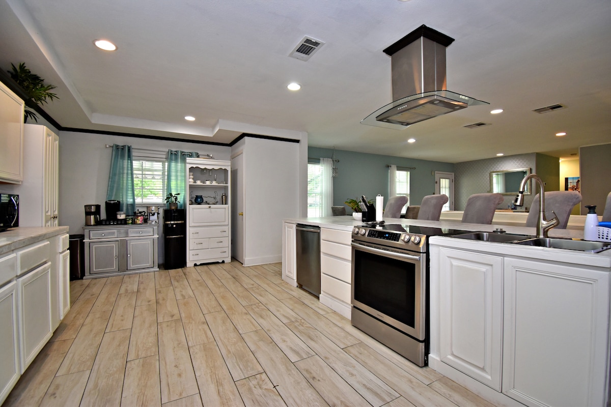 Üdvözlünk a Serene Viewsban – a privát luxusüdülőhelyeden, amely üdülőhelyi stílusú medencével rendelkezik, és amelyet BMT-családok, csoportos kiruccanások és hosszabb távú foglalások számára terveztünk. Ez a dizájner 5 hálószobás/3,5 fürdőszobás otthon Schertzben 10 fő elszállásolására alkalmas, és saját medencével, játékszobával, valamint stílusos nappalival rendelkezik. Pár percre a Randolph légibázistól, és a Lackland légibázis utazási körzetén belül. Élvezd a Wi-Fi-t, a teljesen felszerelt konyhát, a mosógépet/szárítógépet és a kisállatbarát kényelmet a zavartalan, pihentető tartózkodás érdekében.