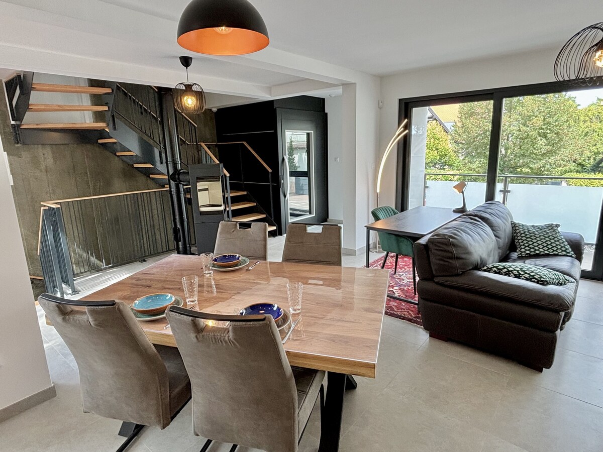 Grande maison cosy et lumineuse avec vue sur jardin. A 15 min. en bus et 10 min. en voiture du centre-ville de Strasbourg. Quartier résidentiel et calme. Profitez du jardin, de la cuisine équipée et de la terrasse. Cheminée décorative. La maison est à 2 min. d'un parc et des commerces : boulangerie - supermarket - marché bio - pharmacie - épicerie.