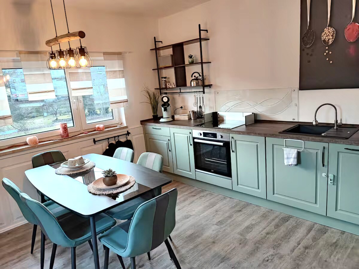 A Thuringian Forest idilli környezetében elhelyezkedő, 30 m² -es terasszal rendelkező, 70 m² -es erdei loftlakás festői menedéket kínál művészeknek, pároknak és szabad szellemeknek. Hagyd, hogy elaltasson a kandalló pattogása, és ébredjen fel a madarak csiripelése. Legyen szó kreatív inspirációról, romantikus pillanatokról vagy a természet felfedezéséről - megtalálod a tökéletes helyet a 2000 négyzetméteres ingatlanunkban.
