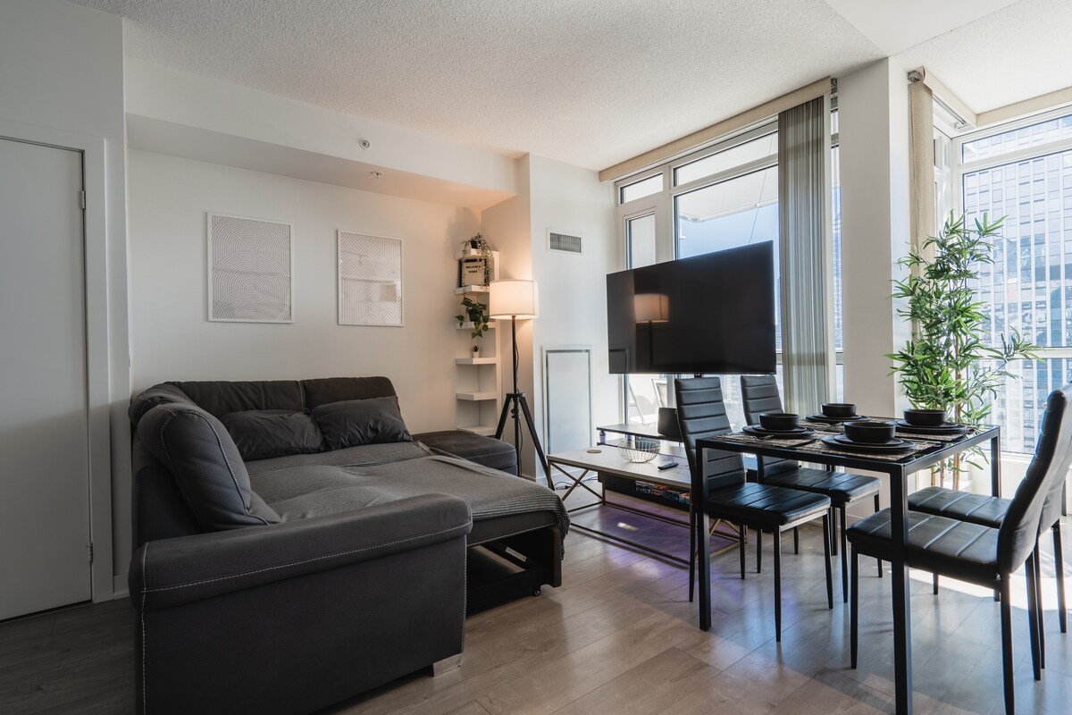 Ez a tágas és stílusos stúdió lenyűgöző kilátást nyújt a városra, a CN Towerre és 5 perc sétára a tótól, valamint nagyszerű kényelmi szolgáltatásokat nyújt az épületben (edzőterem, medence, pezsgőfürdő, szauna, co-working stb.). Az egység teljesen berendezett, intelligens TV-vel, saját mosodával, nagy sebességű WI-FI-VEL és napi alapvető kellékekkel felszerelt. Közel van a Bill Bishop repülőtérhez, az autópályához és a tömegközlekedéshez, rengeteg étteremmel/bárral, kávézóval és élelmiszerbolti történettel. Élénk társasági élet, mégis csendes a zajoktól.