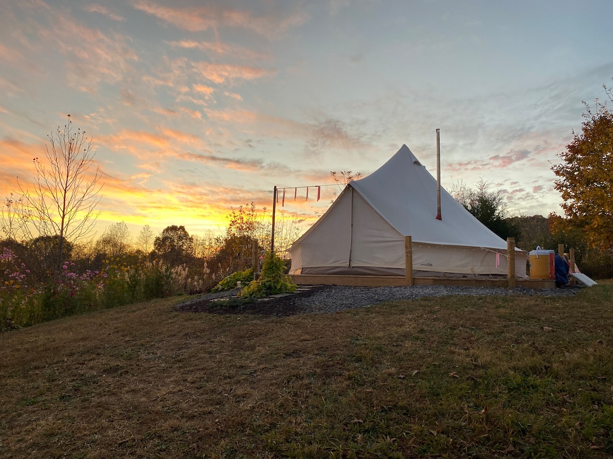 Gyönyörű privát hegytető luxuskemping lenyűgöző kilátással, sötét égbolttal és kertekkel, saját WC-vel és napenergiával működő kempingzuhannyal. További sátrak is elérhetők. Élvezd a közeli állami és nemzeti parkokat - túrázás, úszás, kajakozás, horgászat stb. Látogass el a Natural Tunnel State Parkba, a Clinch Riverbe, az Devils Bathtubba, a Powell River Trailbe + Jefferson National Forestbe. Vagy tölts el egy napot a Big Stone Gapben, és élvezd az éttermeket, sörfőzdét, fesztiválokat stb. Tri-Cities are nearby -35 minutes to Kingsport
