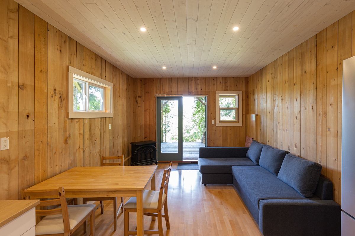 545 négyzetláb hangulatos 1 hálószobás kisház (2 férőhely) -Queen méretű ágy - a hatalmas erdő veszi körül, és az óceán karjára néz -dagadó ágynemű - beltéri nagy áztató kád (zuhanyzó nélkül) - kültéri meleg zuhanyzó (március 15. és október 15. között) - külön privát pezsgőfürdő-épület (ha van egy másik pár a szálláshelyen, be tudnak jutni) -private dock - ingyenes kenuk és evezős deszka (május 15. és október 1. között) -fatűzhely ingyenes 1. vödörfával -nagy privát terasz -BBQ - teljesen felszerelt konyha étkezővel -niving room