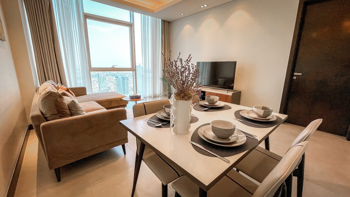 Ébredj lélegzetelállító naplementére és kilátásra a városra. A 35. emeleten található hangulatos és modern lakás a meleget, a stílust és a kényelmet ötvözi gyönyörűen megtervezett belső terekkel és átgondolt részletekkel. Ez a modern szállás Manama városában található, kevesebb mint 15 percre a város vibráló kultúrájától, piacaitól, vízparti kávézóitól, kulturális látnivalóitól, legjobb éttermeitől és pezsgő éjszakai életétől. A lakás a város zajos része felett van, és tökéletes egy békés kiruccanáshoz!
