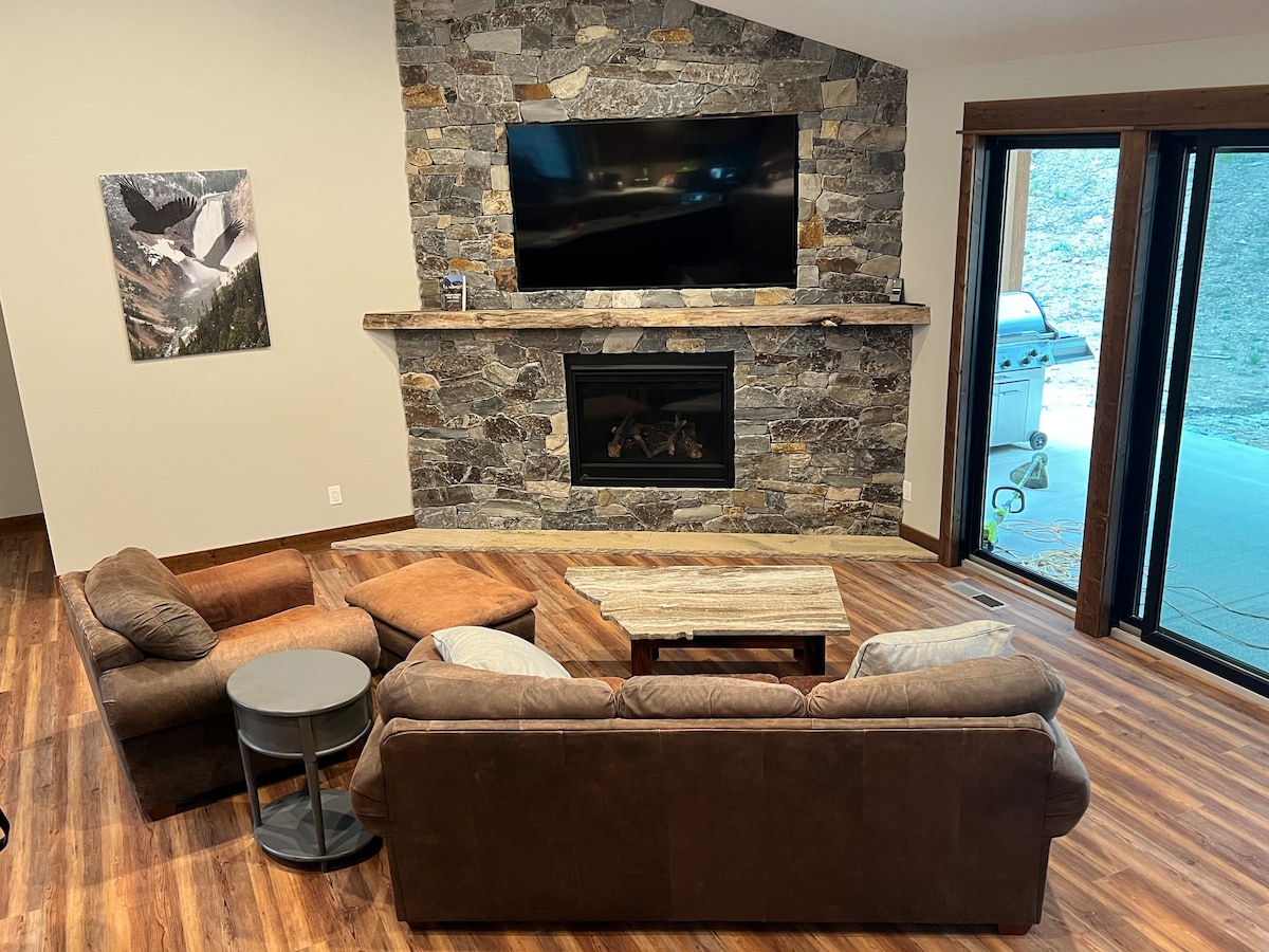 Dőlj hátra, és pihenj ebben a gyönyörűen hatékony, hegyvidéki, modern kunyhóban. Ez a karcsú hely modern konyhával, kényelmes nappalival és intelligens TV-vel, Wi-Fi-vel és bluetooth sztereóval büszkélkedhet. A nagy saroküveg fénnyel fürdik a belső teret, és beengedi az erdőt, míg egy becsomagolt terasz tökéletes környezetet biztosít az étkezésekhez vagy a propán tűzrakóhely mellett lógni. A világos queen hálószoba mosógéppel/szárítógéppel rendelkezik, és a kanapé egy kiváló minőségű franciaágyat kínál, amely alvási lehetőségeket kínál a vendégeknek.