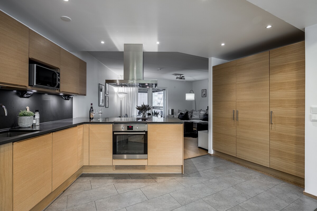 Experience Penthouse living in central Helsinki. Enjoy glassed-in balcony – warm even in early Spring if sun shines. Relax in the sauna, dine & lounge on the balcony while enjoying breathtaking archipelago scenery. A rare gem combining central city vibes, seaside charm, and views to the nature — completing your ultimate Helsinki experience. ✔ Flexible check-in Gym 🛏 2 BR 🅿 Free Parking (EV) 📺 70" Disney+ ⌘12 min to center 👣 Walkable 🏪 Grocery 60m, 24/7 🍕 Good restaurants Park