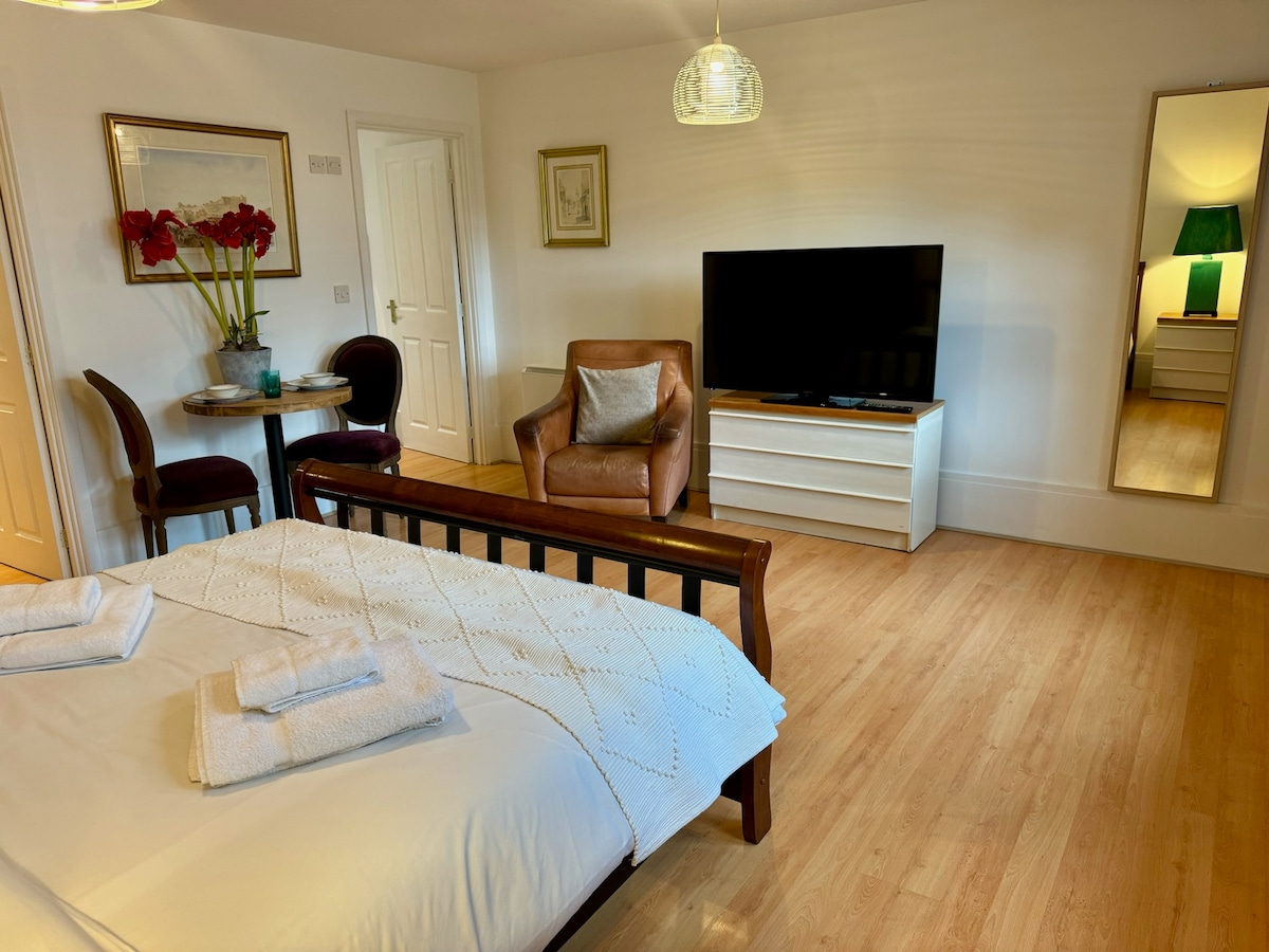 Imádnivaló, tágas földszinti lakás György-korabeli kúriában, karakterrel és eredeti jellemzőkkel. Woodchester festői szépségű falujában található. Ez a lakás otthonos, kisházas hangulatot áraszt vakolatlan fagerendákkal és fatüzelésű kályhával. Két hálószobája van: egy nagy hálószoba/ nappali és egy kisebb hálószoba egy ággyal. Nagy, teljesen működő konyha, fürdőszoba zuhanyzóval és káddal. Hozzáférés a birtokhoz és egy kőhajításnyira a Woodchester kúriából, nemzeti bizalmi földről, tavakhoz és sétákhoz.
