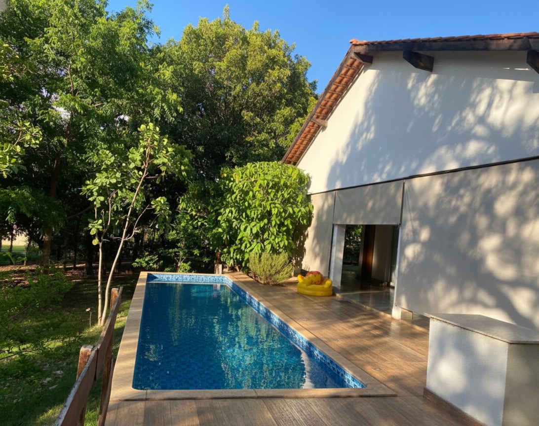 Casa premium e espaçosa, ideal para famílias e grupos. Possui 3 quartos (1 suíte + 1 quarto com 2 camas de solteiro 1 quarto com acesso ao banheiro social) e acomoda até 6 hóspedes, com sofá para dormir . Área externa com piscina aquecida, área gourmet, churrasqueira a carvão, mesa para 10 pessoas, ducha e lavabo externo. Ambientes bem decorados e garagem para 1 carro. 📍 Senador Canedo: 15 min do Shopping Flamboyant, 17 min do Autódromo de Goiânia, 20 min do Aeroporto.
