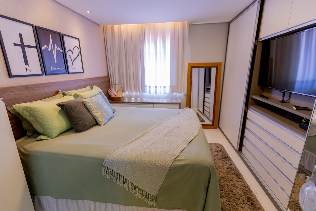 Új Apartamento, mindössze néhány percre a bevásárlóközponttól, amely egy rendkívül csendes és csendes hely. * Légkondicionált a lakosztályban és a nappaliban a legnagyobb kényelem érdekében. * 1 franciaágy és 1 ágy bicamával, és ha szükséged van rá, akkor is tudunk pótmatracot biztosítani * Minden konyhai eszköz elérhető, valamint ágy- és fürdőjátékok. * Használható Wi-Fi