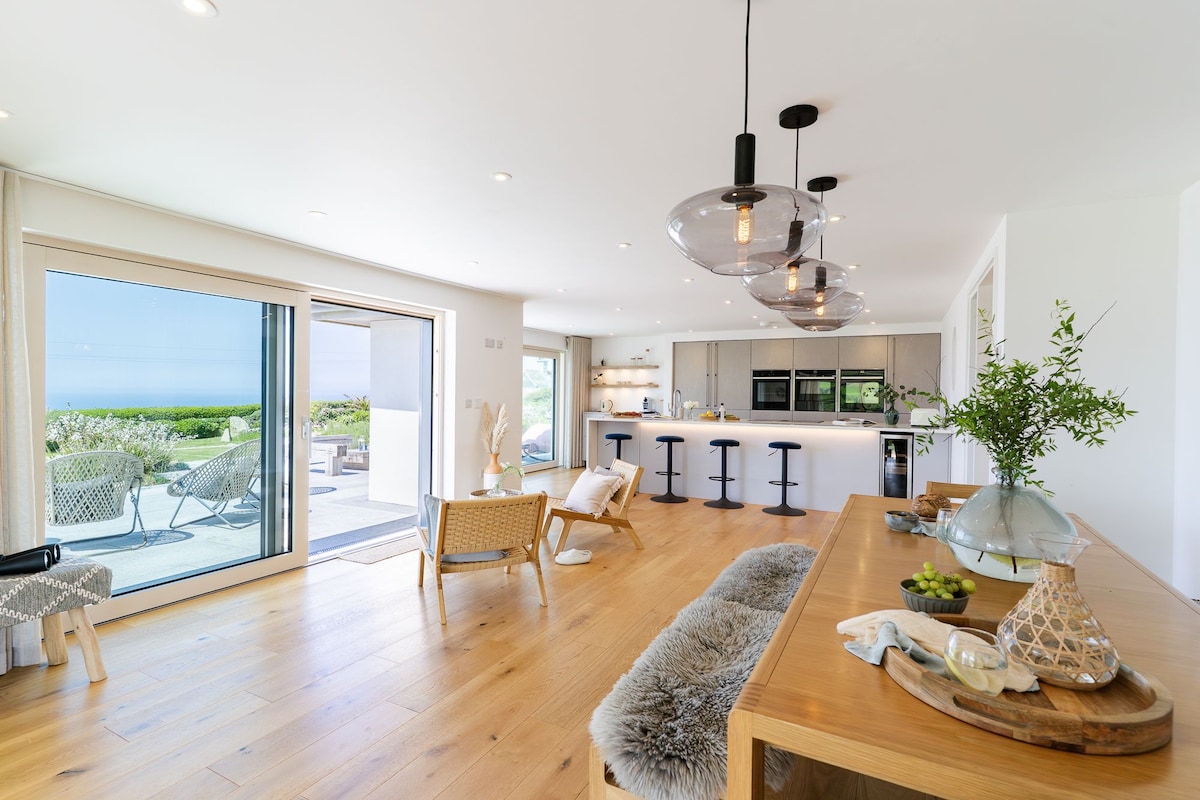 A Cyanban található Penthouse egy világos, kortárs legfelső emeleti lakás, amely 2 erkélyéről lenyűgöző kilátás nyílik a Porthcurno strandra (5 perc séta) és a Logan Rockra. A Minack színház és a délnyugati part menti ösvény mindössze 5 perces sétával érhető el. A Porthcurno partszakaszt a Poldark forgatására használták, és az Egyesült Királyság egyik legjobb strandjának számít. Gyors WIFI, 2 parkolóhely és közös BBQ-terület. Sajnáljuk, nincs háziállat. Min. 4 éjszakás tartózkodás a csúcson - 7 nap júliustól szeptemberig/karácsonyig/NY-ig
