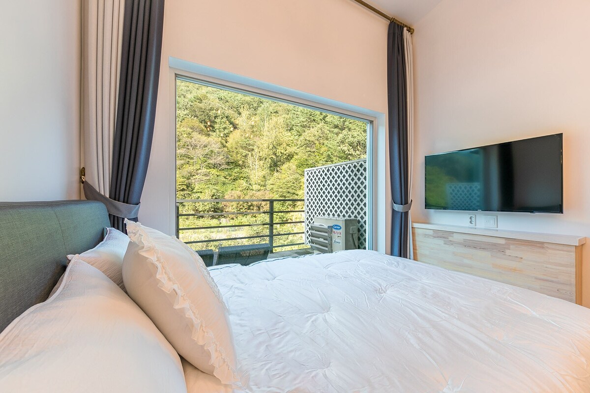 Ez egy vidéki ház több gyümölcsfával, amely 420 méter magasságban található a Demokratikus Hegy Samdobongja alatt, távol a Deokyusan Nemzeti Park és a Muju Resort nyüzsgő turisztikai látványosságaitól. Körülbelül 10 perc alatt elérhető Taekwondo Won és Bandiland, és 25 perc alatt elérhető a Deokyusan Muju Resort. A falu hátországában a völgy természetes szépségét is élvezheted. Az Uncle House a leginkább szigetelt amerikai stílusú faszerkezet, amelyet Szöul tekintélyes faépítő cége tervezett és épített. A mennyezet magas, a nyár hűvös, a tél pedig meleg ház, magas és tágas kilátás, és forró hely, ahol élvezheted a csillagos kilátást nyújtó tűzrakóhelyet. Az első emelet a házigazdapár helye, a második emeleten található 56m2 (a terasszal együtt) pedig a vendégház. Külön bejárattal rendelkezik, és nem kényelmetlen ház, mert van házigazda, de nagyra értékeljük, mert azonnali segítséget és szolgáltatást kaphatsz. Az Uncle Style BBQ remek hely egy amerikai családnak, és a nagybácsi házával kapcsolatos ételkészségek is nagyszerűek. A saját kültéri kandallóval rendelkező napozószoba messze a legjobb ♡