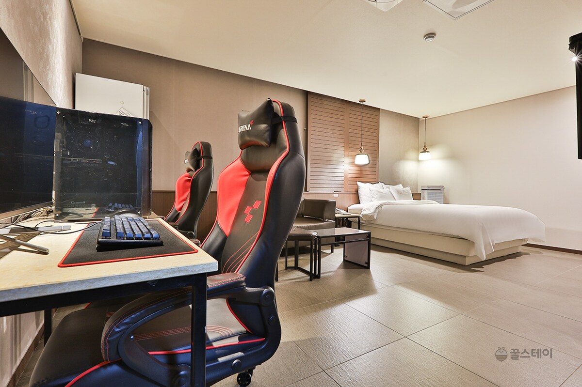 Ez a szoba egy extra nagy, 86 hüvelykes okostévéből, fekvőfotelből és king méretű ágyból áll. Ingyenesen élvezheted a Disney Plus-t és a Netflixet. Kellemes környezettel és tágas parkolóval büszkélkedhet. Van egy szoborpark együtt, így nagyon jó egy sétához. Masan központjában található, így a közlekedés kényelmes, és nagyon könnyen megközelíthető olyan főbb turisztikai látványosságok, mint a Jinhae Sea Park, a Cherry Blossom Festival, a Masan Fish Market és a baseballpálya, valamint a főbb üzleti létesítmények, például a kormányzati hivatalok és a vállalatok. 3000 won értékű utalványt biztosítunk, amelyet ebben a 7-Elevenben használhatsz fel.