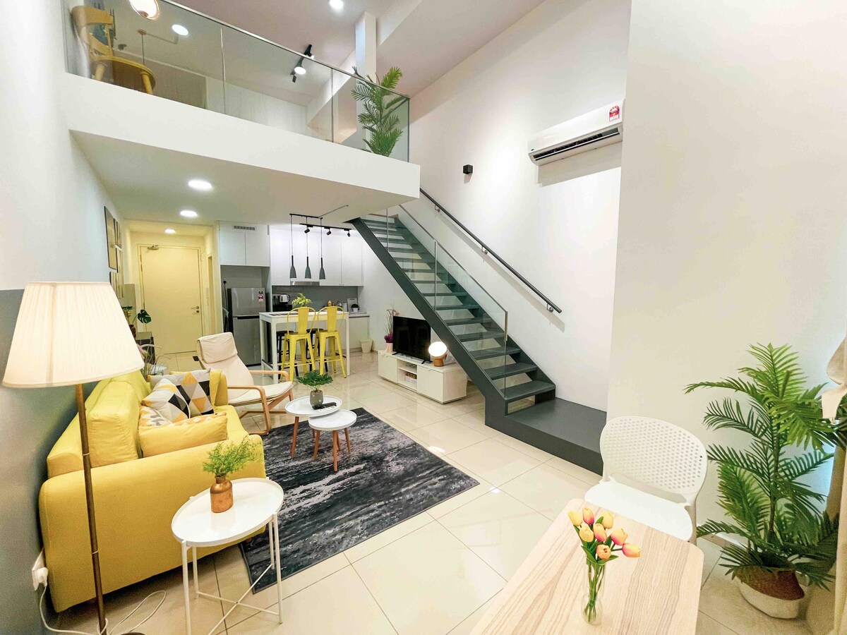 A cosy duplex on the highest floor of the building (Level 21), with a queen bed and a 3-seater sofa. Suitable for both short- and long-term stays. The building is in De Centrum Mall, with shops such as Super7 (supermarket), Mr. DIY, Watsons, and 7-Eleven among others, and facilities like launderettes and a clinic (Poliklinik MyMedik). âąCheck in time: from 3PM âąCheck out time: 12PM