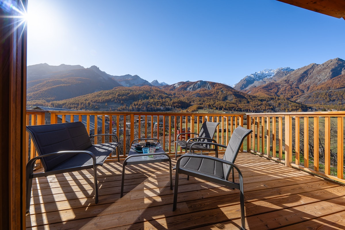 Atipikus, meleg, békés házunkban kényelmesen elfér 10 fő, tökéletes családdal vagy barátokkal való tartózkodásra. Briançon magasságából, a nagy üvegablakok és a panorámás terasz lélegzetelállító kilátást nyújtanak a hegyekre. Autóval 5 percre a Prorel felvonótól, amely elvisz a Serre-Chevalier hatalmas területére, de üzletekhez, a Cité Vaubanhoz is, miközben a természet veszi körül. Gyere és élvezd, megérkezett a hó!
