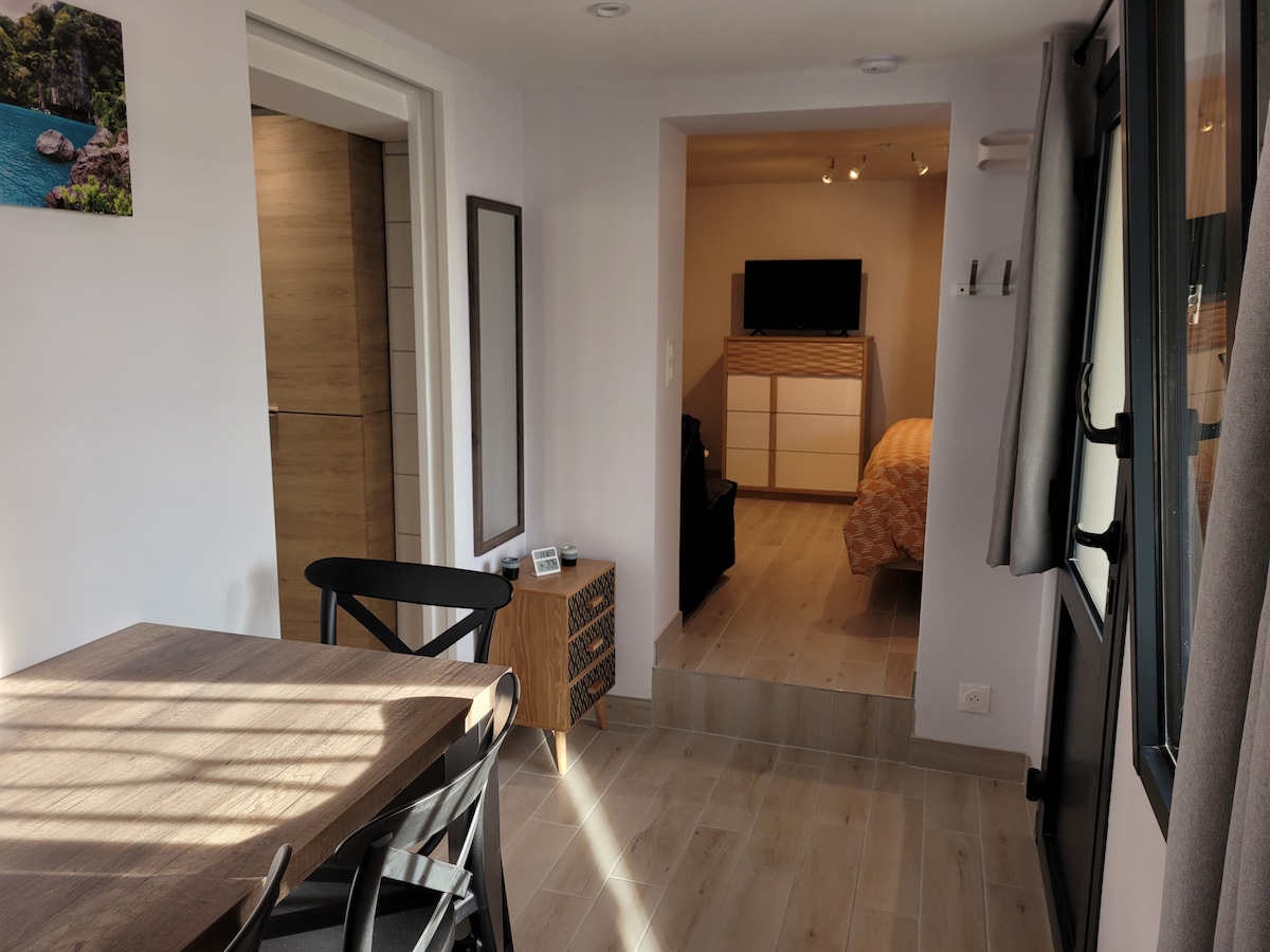 Szép, hangulatos szállás 2 km-re az A6-os autópálya 20-as kijáratától, Auxerre (7 km) és Chablis (13 km) között Tökéletes egy kis megállóhoz, vagy a szőlőhegyek és a gasztronómia felfedezéséhez. – Önálló belépés kulcsszéf segítségével - 1 db 160 x 200 cm-es kétszemélyes ágy fedőmatraccal, párnával, szállodai minőségű paplannal – 1 kanapéágy, szélessége 140 cm (az ágy felára ellenében érhető el, lásd alább) - 40 hüvelykes okostévé + ingyenes Wi-Fi - Felszerelt és felszerelt konyha – Senseo kávéfőző + teafilterek és cukor áll rendelkezésre – Samponmegtakarítás – Videós megfigyelés a parkolóban