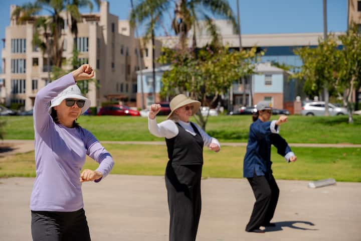 A tajcsi és a csikung egyedi keverékét hozom létre a lenyűgöző Balboa Parkban.