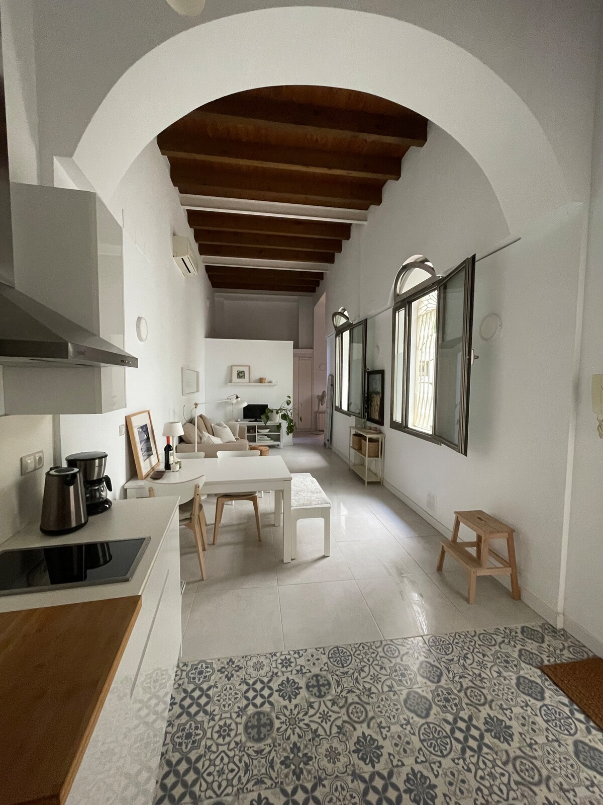 Feel at home in most authentic neighborhood -steps from great restaurants, famous historic sites, and SO MUCH MORE! This amazing and QUIET home features fantastic tasteful ART, great COMFORT and modern touches throughout. Steps away from public transport, taxi stops, and municipal bikes. Fabulous fully equipped kitchen. This comfy atmosphere creates UNIQUE place to RELAX after enjoying vibrant Seville, perfect "home base" to visit other cities in Andalusia with private parking available.