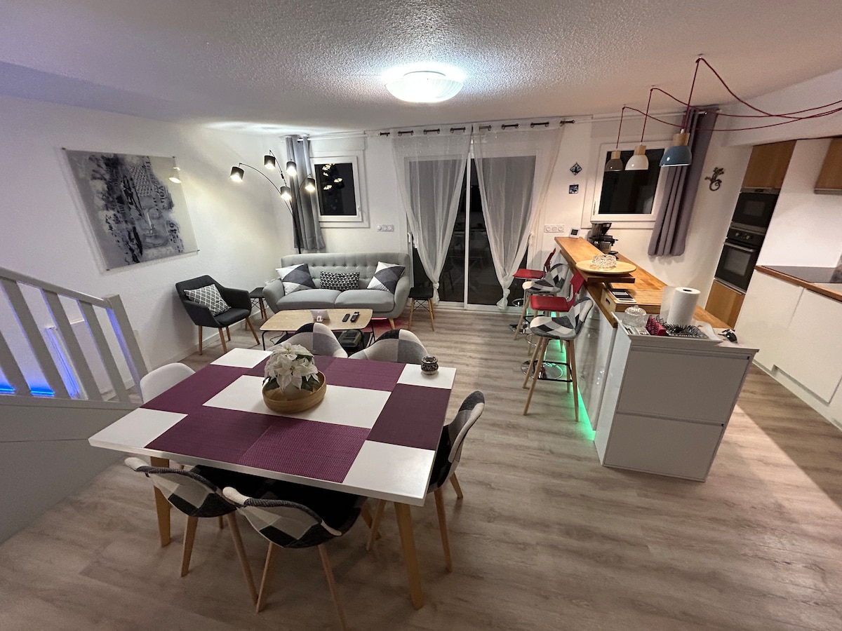Duplex lumineux de 94 m2 près du château et du centre ville avec marché typique, 1er étage, terrasse, parking, calme, wifi, 2 télévisions, , lave vaisselle, machine à laver, sèche linge, expresso, cuit vapeur ; Monopoly, scrabble, Poker, jeux cartes etc ... 2ème salle de bain au 1er étage, baignoire assise, vasque et 2ème WC. 2 lits en 160 cm, dont l'un peut se dédoubler. 2 chambres, 3 lits + 1 lit bébé draps et couverture. chaise haute, jeux, pot, matelas à langer, siège baignoire