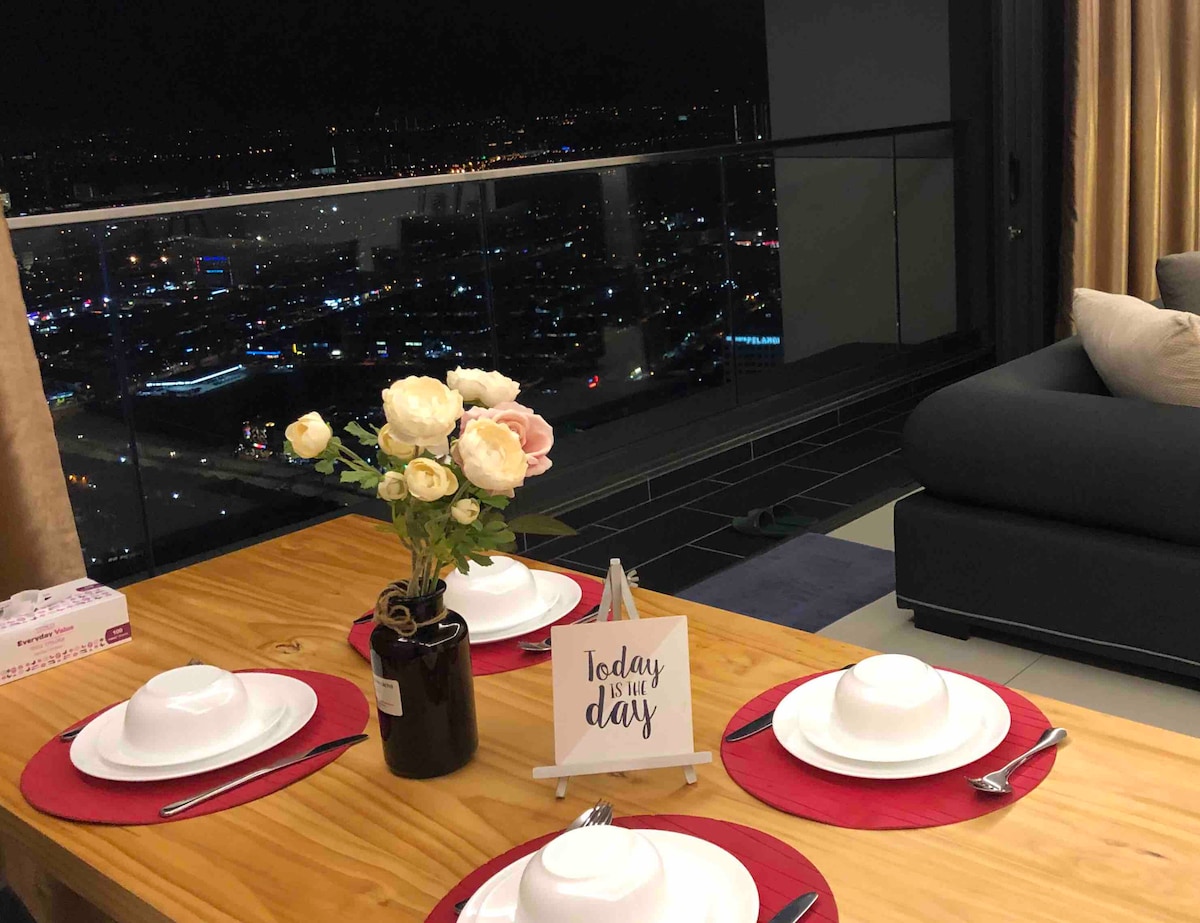 VADONATÚJ egység! Twin Galaxy Residences - Luxuslakás, amely jellegzetes dizájnnal és sikkes együttélési koncepcióval büszkélkedhet. Mostantól a teljes méretű Airbnb-szálláshelyeken is elérhető, és 4 tágas hálószobát mutat be Johor Bahru nyüzsgő szívében, amelyet rengeteg vásárlási és étkezési lehetőség vesz körül. Merülj el a fényűző élet örömében azzal, hogy most nálunk szállsz meg! Minden vendégnek tökéletes életmód-élményt kínálunk!