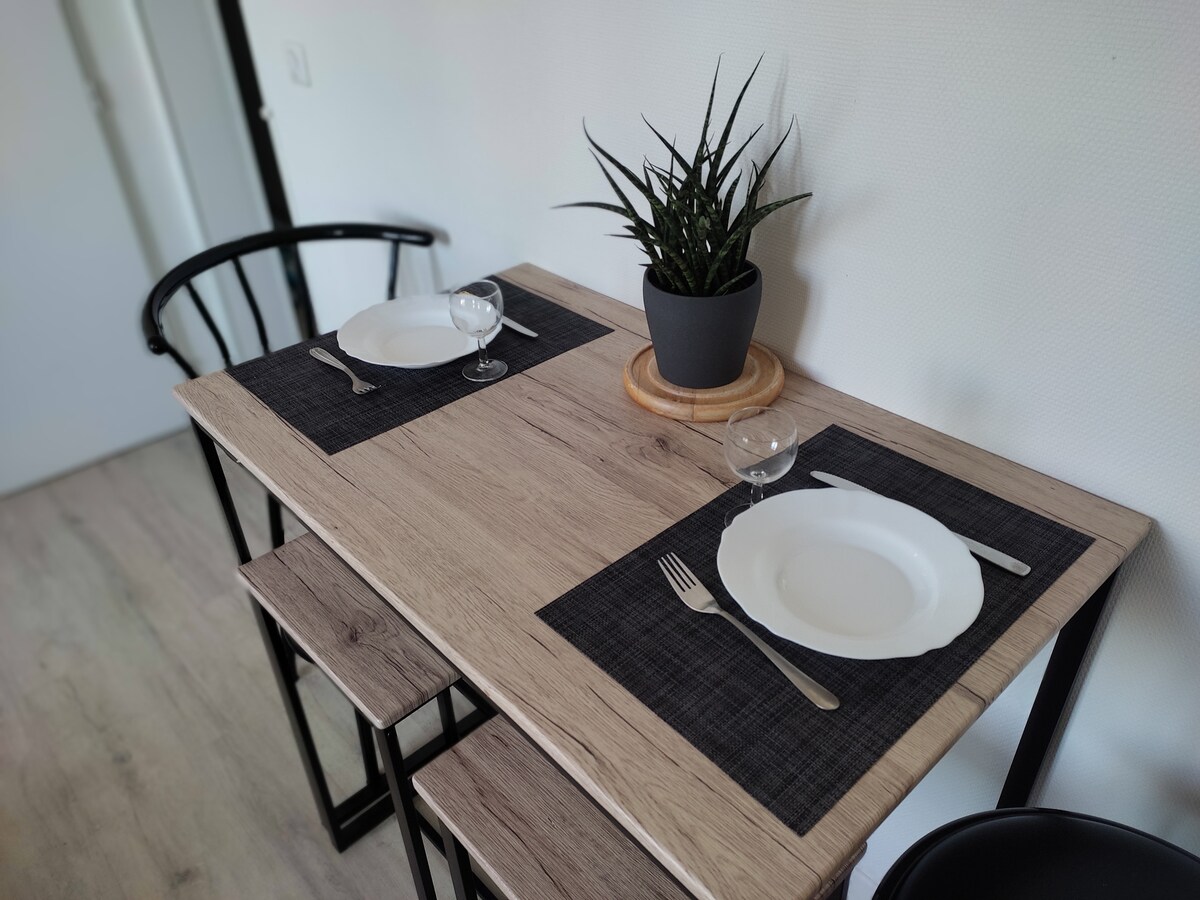 Új és világos, 35m2-es lakás, amely Redontól északra, egy csendes környéken található (a kereskedelmi területen található, 5 km-re a városközponttól és 2 km-re a Vilaine vontatóúttól). Ideális megálló a túrázóknak gyalog vagy kerékpárral, valamint Redon és környékének meglátogatásához. Ingyenes parkolási lehetőséggel és független bejárattal rendelkezik. VÉCÉ VÉCÉ NEM BIZTOSÍTOTT ÁGYNEMŰT BIZTOSÍTUNK
