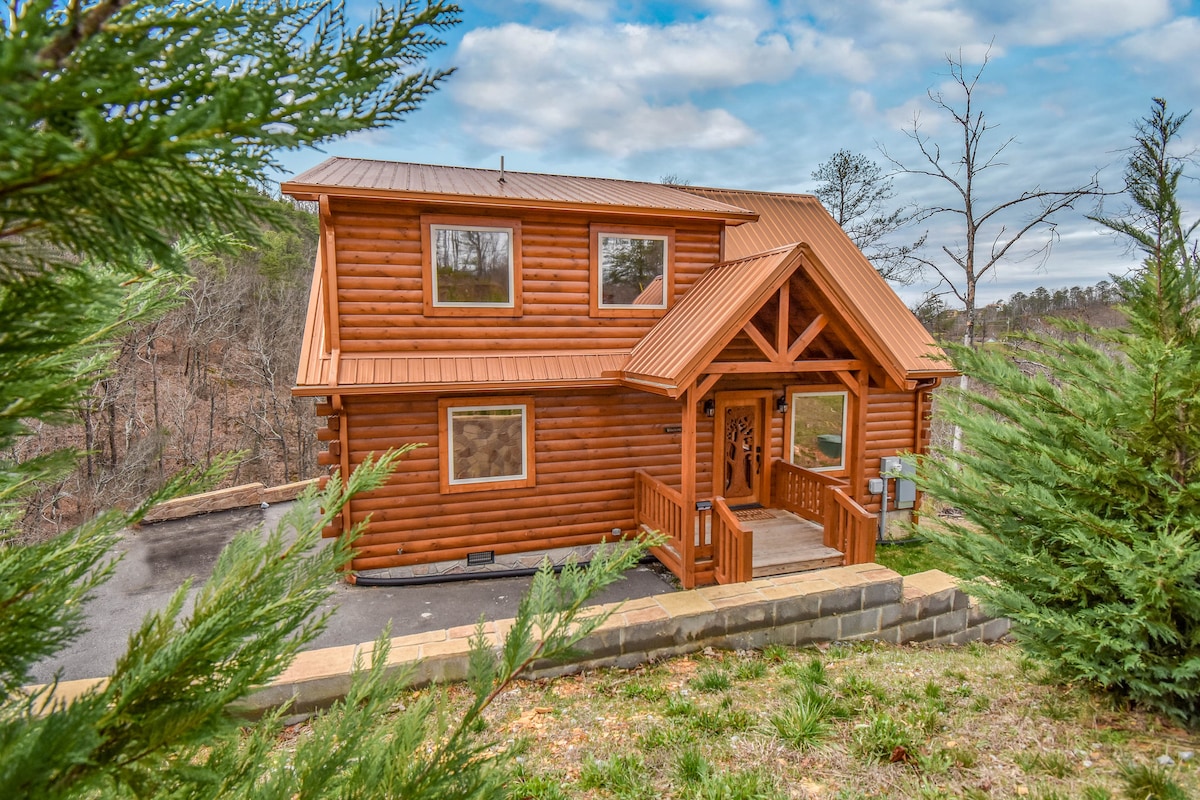 Menekülj a Copper Top Cabinbe, egy modern faházba Pigeon Forge-ban, amely tökéletes nászutakhoz és családi kiruccanásokhoz a Smoky-hegységben. A rusztikusan elegáns szálláshelyen kényelmesen elfér 6 fő. 2 king méretű ágy, saját pezsgőfürdő és jakuzzi várja a vendégeket. Élvezze a nagy sebességű Wi-Fi-t és az okostévéket mindössze 5 km-re Dollywoodtól. Sőt, olyan közel vagy, hogy hallod a Dollywood vonatát. Tapasztald meg a luxus, a kényelem és a világszínvonalú látnivalók tökéletes keverékét ebben a zászlóshajó-ingatlanban.