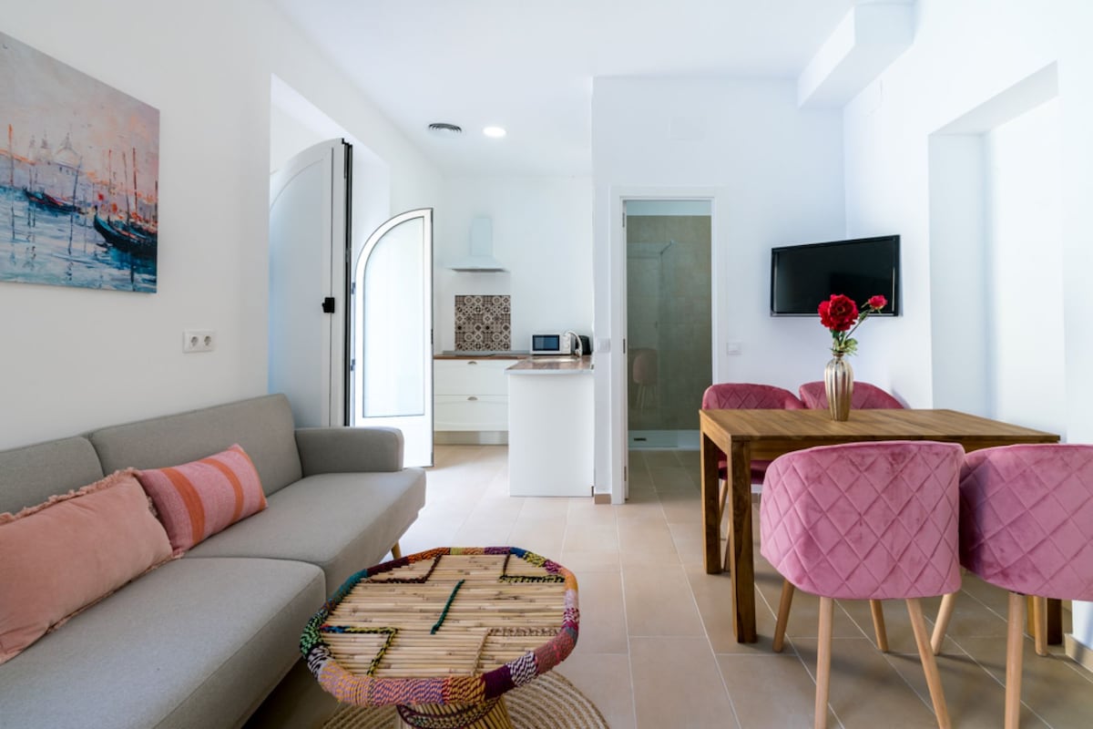 Az apartmanház a következőkkel rendelkezik: egy nyitott terű, felszerelt konyha, nappali kanapéval, egy hálószoba franciaággyal és egy hálószoba két egyszemélyes ággyal. A fürdőszobában zuhanyzó, hajszárító és törölközők találhatók. A lakás befogadóképessége 5 fő. Az eredeti andalúz stílusát tiszteletben tartó, teljesen felújított épület lifttel és közös terasszal rendelkezik, ahonnan csodálatos kilátás nyílik a városra. Babaágy és babaszék kérésre rendelkezésre áll Turisztikai engedély: CTC-2020100836