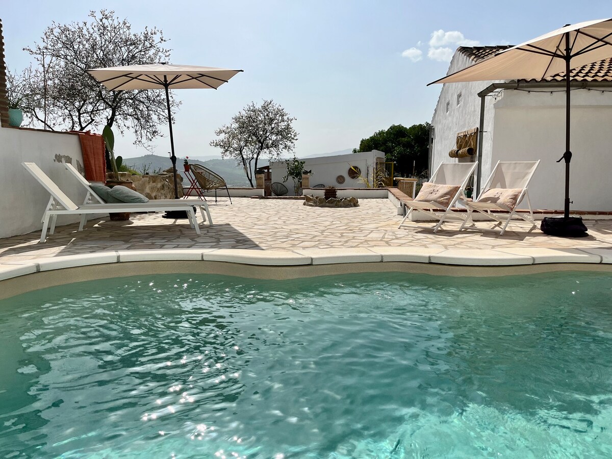 Üdvözlünk otthonos menedékhelyünkön! A casita pihentető kikapcsolódást kínál nagy medencével és grillezési lehetőséggel, valamint lenyűgöző kilátást Andalúzia gyönyörű hegyeire. Tökéletes hely pároknak. Hűtsd le magad a medencében, grillezd meg kedvenc ételeidet, és áztasd magad a hihetetlen tájban közvetlenül a hátsó udvarunkból. Gyere és tapasztald meg az élet egyszerű örömeit Andalúzia kis sarkában. Vedd figyelembe, hogy a szálláshelyünk nem megfelelő 12 év alatti gyermekek számára.