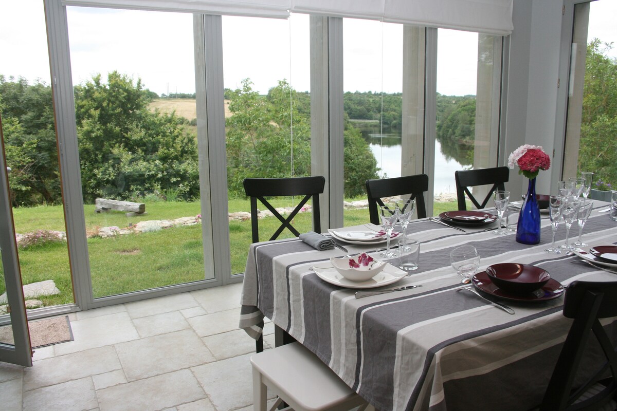 Ideális helyen, a Vendée közepén található a „ Le Coteau de la Vouraie” ház zöld környezetben, a Lac de la Vouraie mezőkre nyíló kilátással. A főbb utakhoz (A83-as és 2x2-es) közel, a Vendée strandjai és a Le Puy du Fou között félúton ideális elhelyezkedése lehetővé teszi, hogy gyorsan hozzáférj számos tevékenységhez. A „ Le Coteau de la Vouraie” ház egy korábbi, 150m² -es parasztház, amelyet szabadon álló kövekkel és gerendákkal újítottak fel.