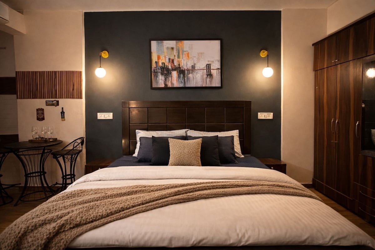 Pihenj a családoddal és a barátaiddal ebben a békés, teljesen berendezett stúdióapartmanban (370 négyzetláb) a DLF Capital Greensben, Újdelhiben, Moti Nagarban. Élvezd az önálló bejutást egy öltözőszekrényen, 3 liften és prémium kényelmi szolgáltatásokon keresztül a kényelmes tartózkodás érdekében. Ez a hangulatos, jól megtervezett stúdió mellékelt mosdóval és modern létesítményekkel rendelkezik, amelyek kényelmesen megtalálhatók Delhi középső részének közelében. Ez a legjobb lehetőség hosszú és rövid távú foglalások esetén egyaránt.