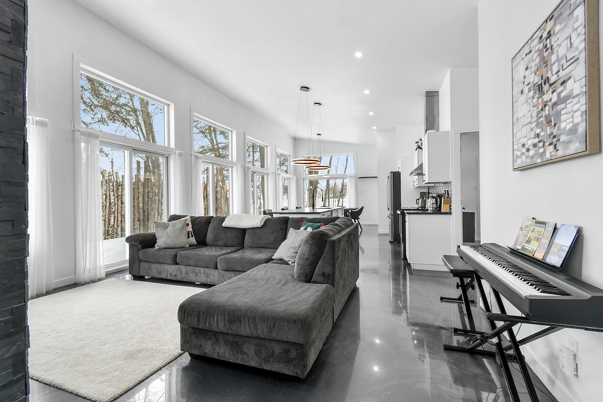 A Serenity egy új építésű épület a Lac Gérard birtokon. Ez a faház legfeljebb 9 személy elszállásolására alkalmas. Mindössze 1 órányira Montrealtól tökéletes egy családi kiruccanáshoz. Ez a modern stílusú faház csodálatos természetes fényt, pihentető dekorációt, nyitott koncepciójú főteret, gyógyfürdőt és száraz szaunát kínál. A nagy sebességű internet stabil kapcsolatot biztosít a távmunkához, így ideális környezetet biztosít a „munkához”. CITQ: 311831