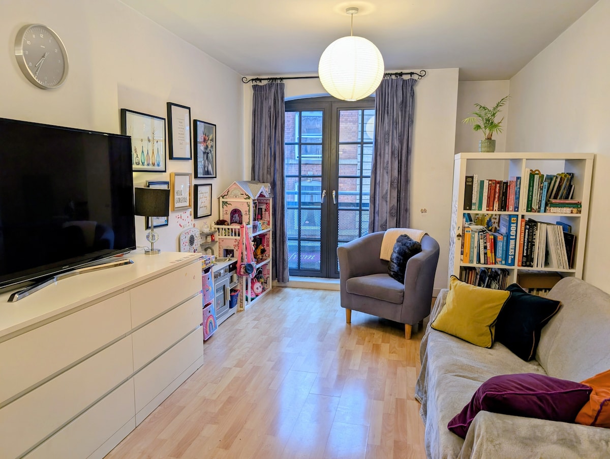 LOVELY FLAT IN THE HEART OF KELHAM WITH A FAB VIEW ❤️ Minutes on public transport to Sheffield town centre Step back into the 70s in this groovy retro pad !!🌈🌈🌈🌈🌈🌈🌈🌈🌈🌈🌈🌈🌈🌈🌈🌈 All the modern day comforts mixed with a nostalgic vibe !! It’s super comfy for 3 and fine for 4 if you don’t mind sharing a sofa bed ! It’s located in the best spot in Kelham Island Great reviews !! … super friendly host !!! Curly Wurly for each guest !! What’s not to love !!! 🥰