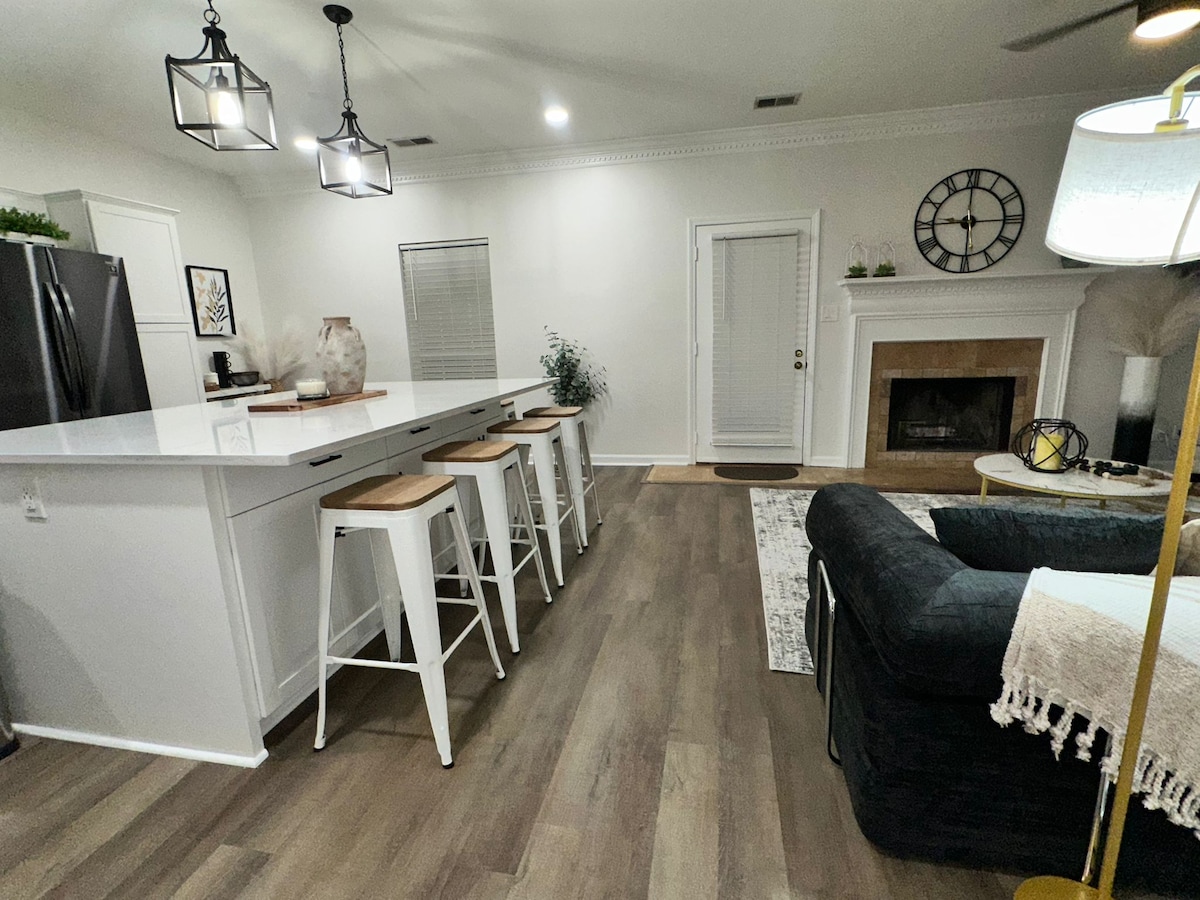 Welcome to our charming, fenced-in home away from home, just 2 miles from the Shelby Co. Courthouse. Offered as a 3/2 with the option to rent the upstairs with an additional 2 BR/1 Bath. Centrally located, we’re only 15 minutes from major interstates and 10 minutes from Lay Lake, wedding venues, vineyards, and the Shelby County Arts Council/Concert Hall. Whether you’re here for business, a special event, or a relaxing getaway, our home offers comfort and convenience in a prime location.