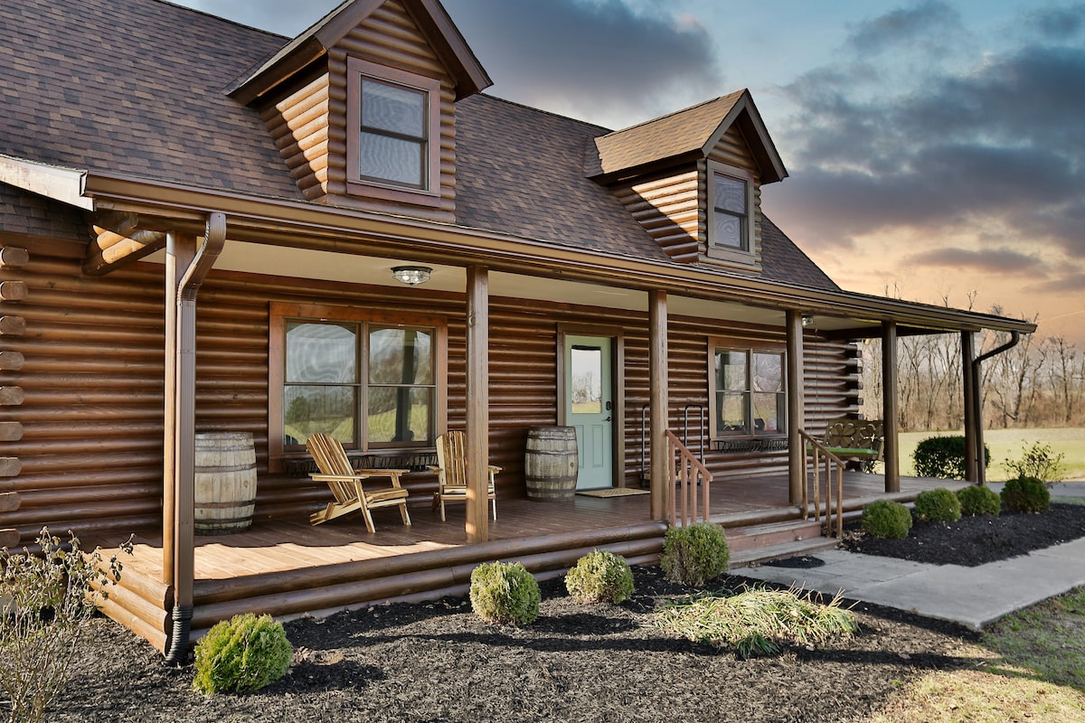 Ez a gyönyörű 3250 sf rönkház tökéletes helyen, a Bluegrass állam szívében található, és készen áll arra, hogy Kentucky minden területén a bázisod legyen. Bourbon, lovak, régiségek, The Creation Museum, The Ark Encounter, Churchill Downs és még sok minden más egy rövid autóútra található. Vagy ki szeretne bárhová menni, amikor te és a társaid mindent megkaptok, hogy minőségi időt töltsetek együtt a 20 hektáros kiruccanásunkon. Sétálj a túraútvonalakon, élvezd a tűzrakóhelyet vagy a tóra néző teraszt, a gyepjátékokat és még sok mást.