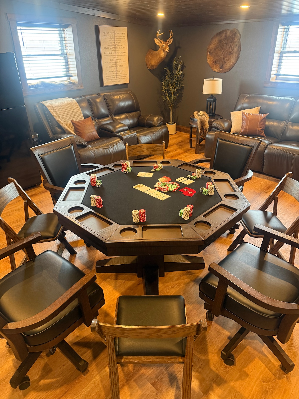 Gyertek, és érezzétek jól magatokat az Elk Ridge-ben, a Wildlife Manor első panziójában! Az Aikman Wildlife Adventure területén található szálláshely több mint 240 állatnak ad otthont. Ez a menedék a vadon élő állatok látványát kínálja bent vagy kint. Lehetőséged van zebrákat, bölényeket, tevéket és még sok minden mást látni! Elk and water buffalo love to take a swim in the pond that Elk Ridge also views also. Élvezd a természeti tájat esténként egy tűzrakóhely körül a vízparti teraszon. Ez egy éjszakai kaland lesz, amit nem fogsz elfelejteni!