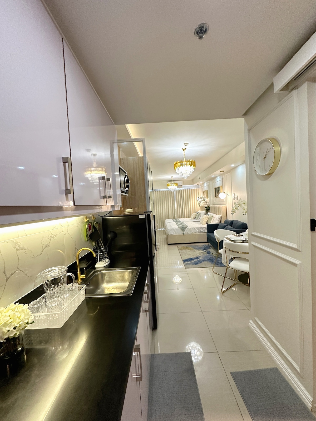 A Royal Suite a WKC Staycationstől Prémium szállodai hangulatú lakás erkélyjel az SMDC Shell Residencesben, Pasay városában. Csak 10 perc sétára az SM Mall of Asia bevásárlóközponttól a felüljárón keresztül, és 15–20 perc autóútra a manilai nemzetközi repülőtértől! Pihenj kényelmes ágyunkon + kanapéágyunkon, amely akár 4 felnőttet is elszállásol! Lazíts a nappaliban, miközben a NETFLIX-et nézed. Bárhol készíthetsz szelfit: a szobában, az erkélyen vagy a medence területén! Tökéletes egy gyors kiruccanáshoz vagy rövid családi tartózkodáshoz a városban!