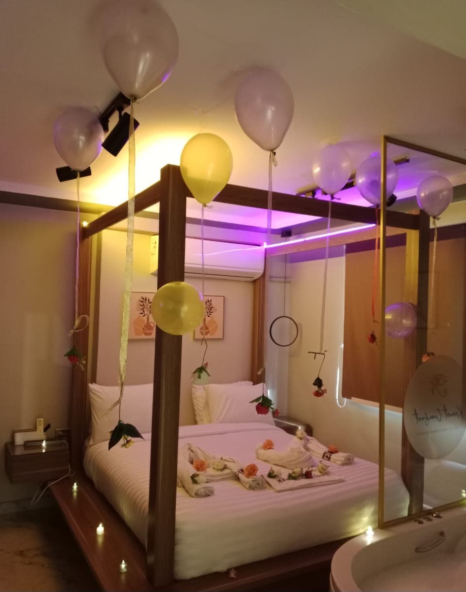 You won’t forget this trendy studio fits for 3 guests comfortably. Has 1 King bedroom with luxuries Jacuzzi & cordless massager while watching 55" Samsung smart TV for an exceptional experience all at once. It's perfect for couples, solo & business travellers. Also features a full bathroom, open kitchenette fully equipped Start your mornings wz rich cup of Nespresso machine Wz 2 free capsules. Please note that Arab and Egyptian citizens are required to submit proof of marriage before check-in.