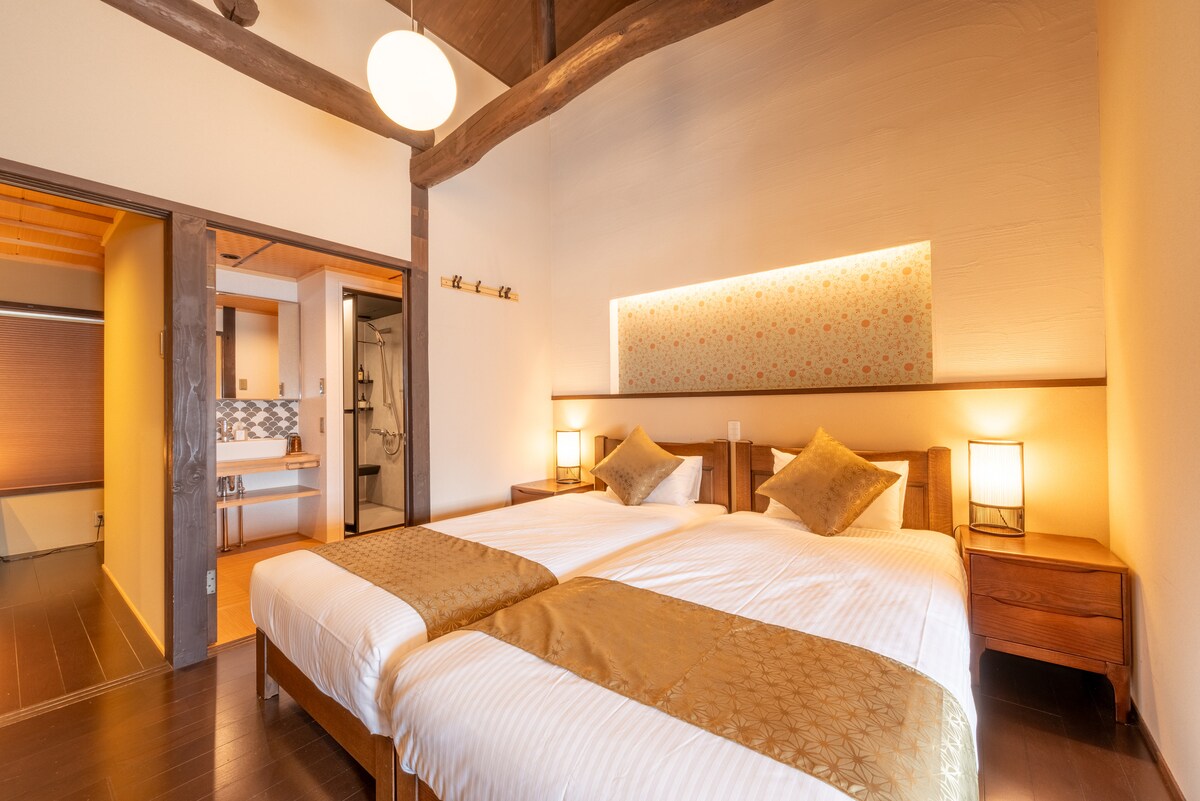 A Kyomachiya Private Lodging "Takasegawa Shichijo" egy teljesen felújított, 115 éves kyomachiya. A kyomachiyát, amely Kiotó gyönyörű tájképét alkotja, magas légzárási és hőszigetelési teljesítményű épületté alakították át, hogy kényelmesen tölthesd az időt a Kiotóra jellemző párás nyarakon és hideg teleken, miközben az eredeti szerkezet megmaradt. Az első emeleti japán stílusú szobából láthatod a tsubo kertet (a teaszobába vezető kertet) egy „roji” képpel. Emellett a folyosón is elhelyeztünk egy kanapét, hogy pihenhess, és élvezhesd a tsubo kert kilátását. Este pihenhetsz, miközben a megvilágított tsubo kertet nézed. A 2. emeleten 2 hálószoba található, az egyikben 2 egyszemélyes ágy, a másikban 1 kétszemélyes ágy található. Ha 5 vagy több vendég van, előkészíthetünk egy futont az 1. emeleti japán stílusú szobában, és hálószobaként használhatjuk, bár ez egy kis kényelmetlenséggel jár. A konyha főzőedényekkel és edényekkel van felszerelve az egyszerű főzéshez.