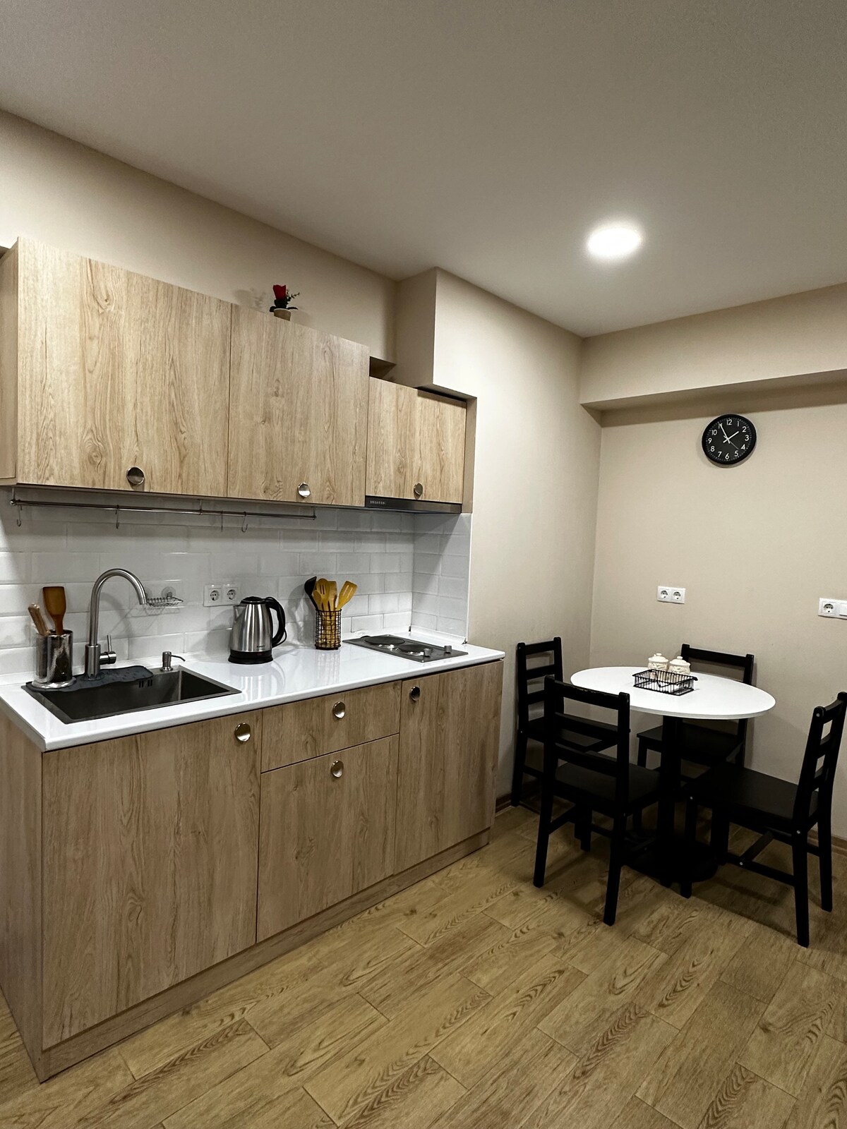 Üdvözlünk a georgiai Gudauriban, 2200 méteres tengerszint feletti magasságban található stúdióban! A fából és kőből készült friss felújítás otthonos hegyi hangulatot teremt. Tökéletes világítás, funkcionális területek - nappali, hálószoba, konyha panorámaablakokkal, amelyek természetes fényt biztosítanak. A napsütötte oldalról lenyűgöző kilátás nyílik a hegyekre. Közel a sífelvonóhoz, üzletekhez és éttermekhez - ideális egy síeléshez. Ez a stúdió ötvözi a stílust, a kényelmet és a funkcionalitást egy felejthetetlen nyaraláshoz.