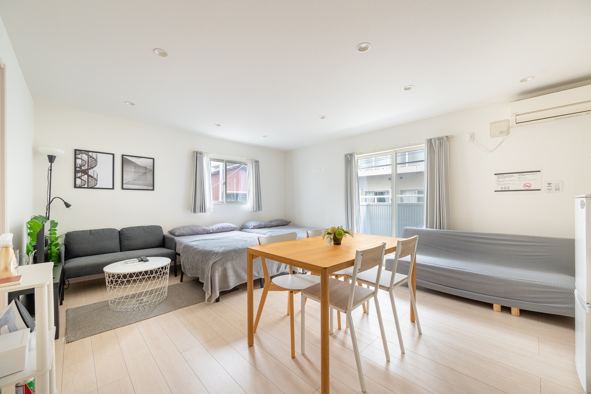15 min to Shibuya, 22 min to Shinjuku — perfect central Tokyo access! Spacious 1LDK (52㎡) for up to 6 guests, with 2 double beds (140×190) & sofa bed. Renovated bathroom & kitchen for a clean, comfortable stay. Living room with sofa & dining table, also great as workspace. Projector for big-screen viewing — fun even on rainy days. A 30-minute train ride from Haneda Airport, major tourist attractions such as Asakusa and the Skytree are within 30 minutes.
