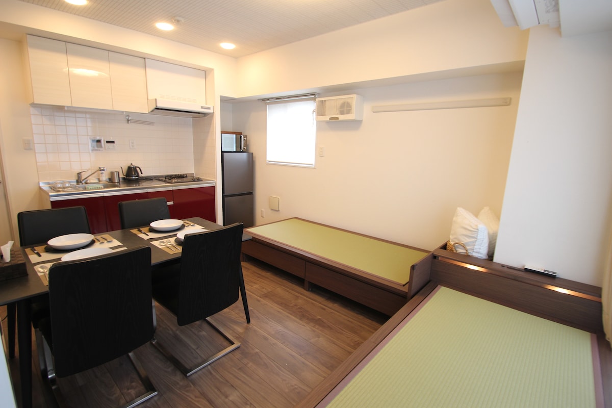 Shinagawa környék/1 percre a Shinkamei állomástól/maximum 4 fő elszállásolására alkalmas/1 db duplaágy, 2 db egyszemélyes ágy