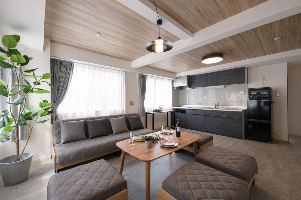 入住這間位處中心地段的房源,全家到哪都方便。 房內配置兩張加大雙人床,適合家人、朋友一同入住 床距舒適,動線保有獨立空間。最多可住5人 開放式廚房備有電磁爐、鍋具與碗盤,想吃家常菜、日式簡單料理都不是問題 吧台連接生活與用餐空間,不論是一杯早晨咖啡,還是一頓晚餐,一切都剛剛好。 洗手台與衛浴獨立設計,幾個人一起住也能保有自己的步調 提供藍芽音響,在日本的夜晚聽著音樂、泡個熱水澡是旅途中最放鬆的片刻。 房內備有投影機,可輕鬆連接常用的數位串流平台 洗衣機、空氣清淨機、熨斗與寬敞衣櫃一應俱全,你需要的,我們都準備好了 空間剛剛好,適合一個人靜靜地在吧台工作,也適合和朋友或家人一起住上幾天 自在相處,各自舒適。