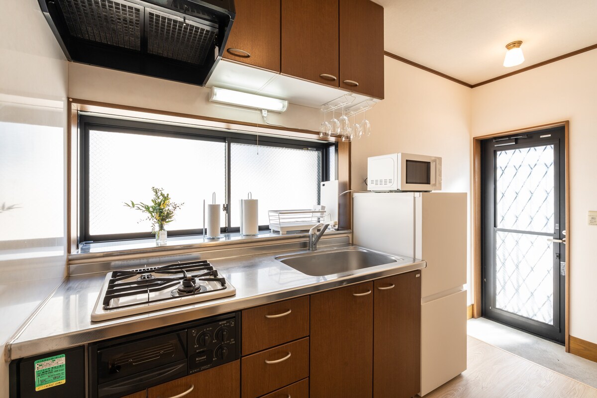Privát házikonyha grillezővel, amely a Mt. Fuji, fürdő, fűtés és hűtés!