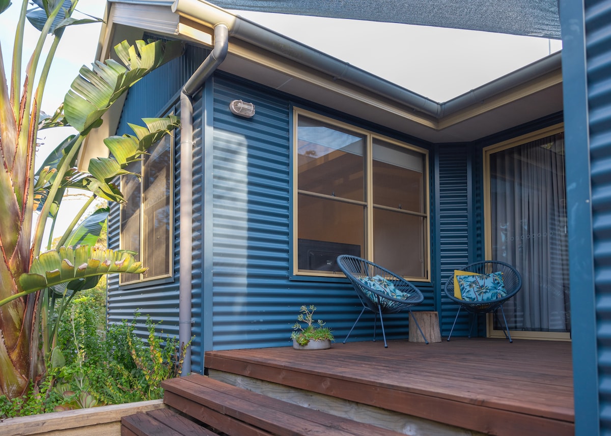 SUMMER IS HERE so relax in the sunny, exclusive use, private courtyard under the trees or hide yourself away in the cabin built for 2. New mattress and renovated gardens, our self contained studio with Shoalhaven River at the end of the street with 24/7 dog beach and a 3 minute drive to the rolling surf Seven Mile Beach. Studio sleeps 2 . R/C air conditioning, TV, full kitchen, bathroom and outdoor area with BBQ. WIFI is FTTP so usually fast.