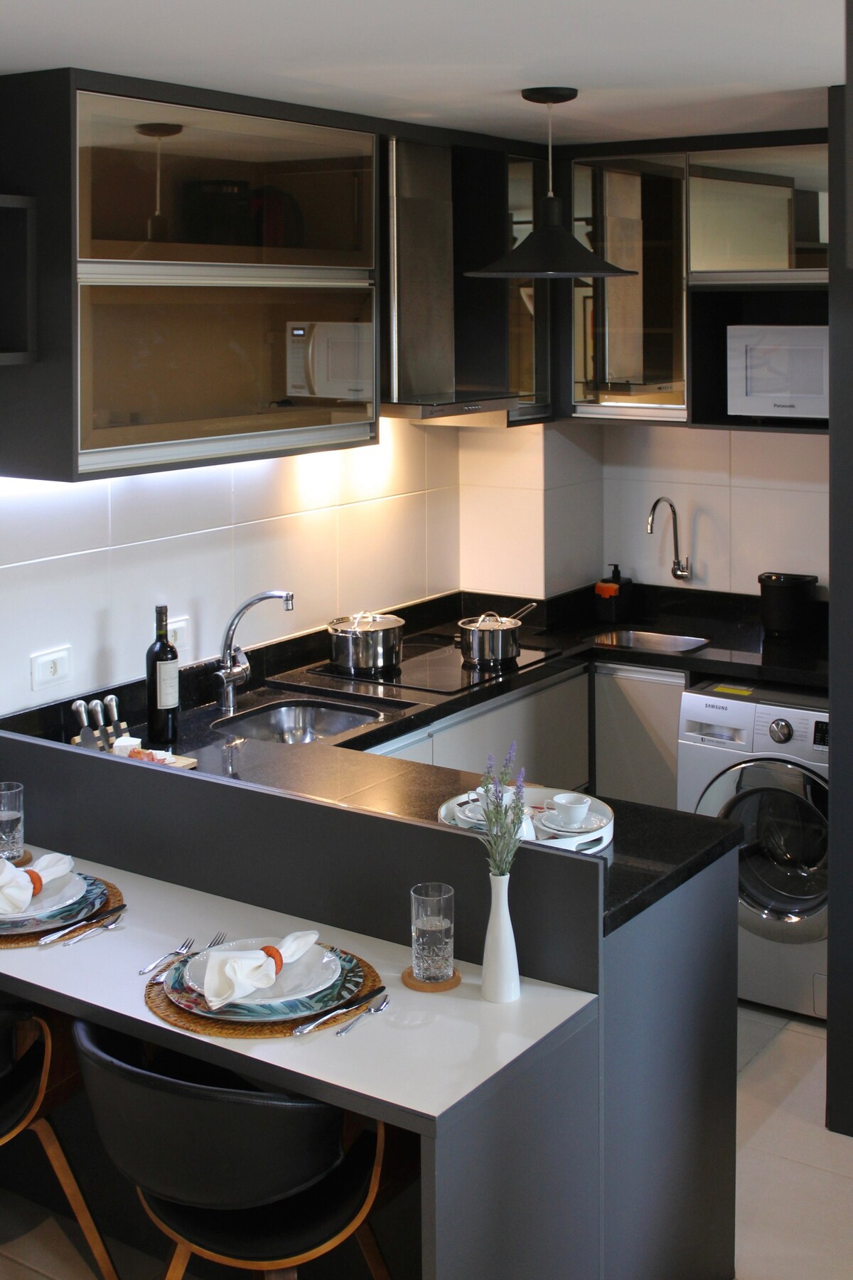 Modern stúdió, vadonatúj, otthonos, tökéletes elhelyezkedés, gyönyörű kilátással az erkélyről, különösen éjszaka . Gyors Wi-Fi, íróasztal, 55hüvelykes okostévé, queen méretű ágy. Légkondicionálás (meleg/hideg). Mosógép és szárítógép, valamint egy gyönyörű sziget a konyhában. 50m2, nagyon 27. stílusú, csendes. A Center/Batelben, üzletek, bankok, bevásárlóközpontok, gasztronómiai központ és kórház közelében. Az épületben :Medence, edzőterem, játékterem, szauna, jacuzzi, 24 órás portaszolgálat.